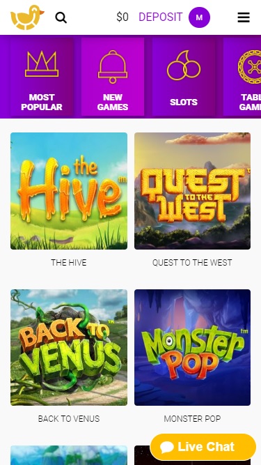 DuckyLuck 赌场由 BetSoft, Genesis Gaming, Rival, Saucify, Arrows Edge, Spinomenal, Felix Gaming, Fugaso, BGAMING, Dreamtech Gaming, Radi8 Games, Fresh Deck Studios, Woohoo Games, Qora Games, Tom Horn Gaming, Genii, Wager Gaming, Dragon Gaming and Dragoon Soft提供支持,赌场游戏通过网页平台提供,您只需使用网络浏览器即可访问。此外,我们还支持使用智能手机或平板电脑进行移动投注,让您畅享游戏乐趣。