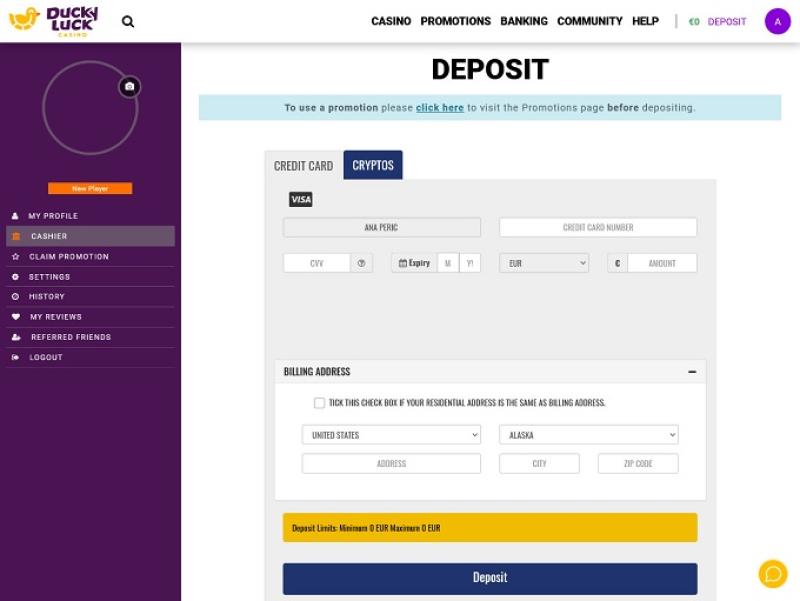 下面您将看到 DuckyLuck Casino 提供的各种银行业务选项。