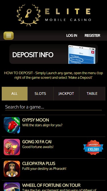 Elite Mobile Casino 目前不向客户提供积分。许可证信息