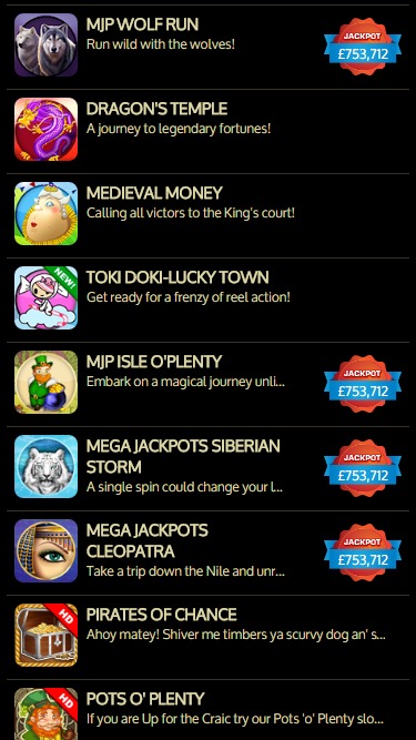 Elite Mobile Casino 提供海量老虎机游戏,其中包括数十款视频老虎机和少量经典的三轴老虎机游戏。所有老虎机均针对小屏幕设计,即使在狭小空间内也能获得良好的游戏体验。Comp Point Program优惠点数⽅案