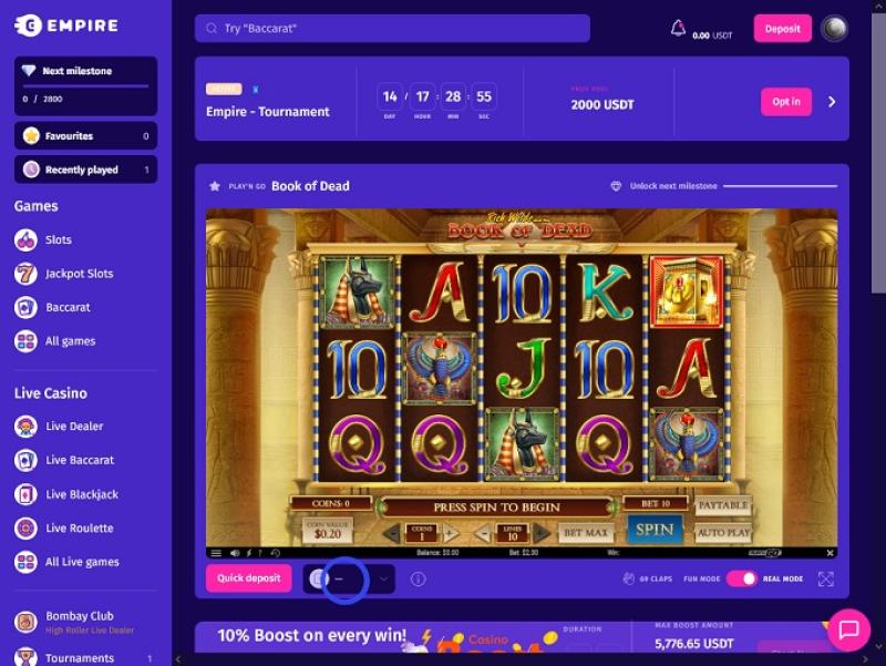 除了前面提到的忠诚度计划和在线老虎机锦标赛之外,Empire.io Casino 并不提供许多传统意义上的奖金。