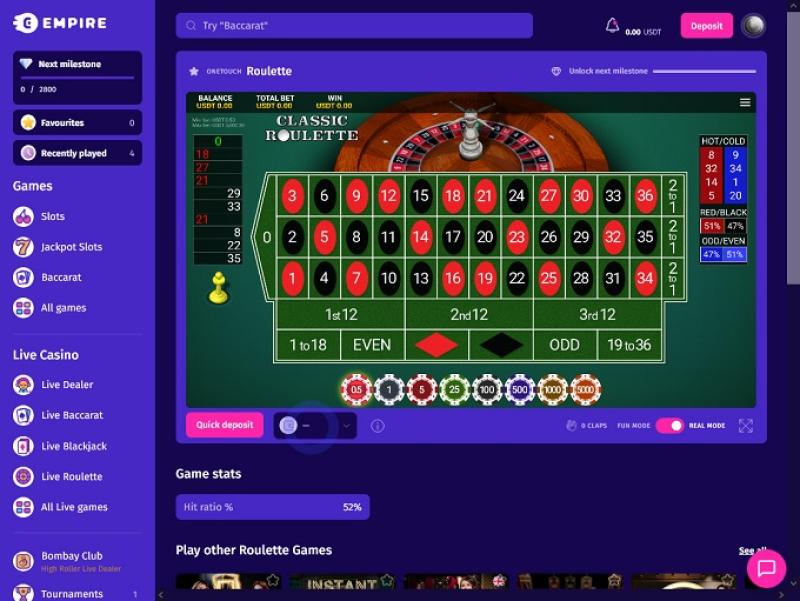 Empire.io Casino 是一个仅接受加密货币的在线游戏品牌,由一家根据库拉索法律注册的公司拥有和运营,并由库拉索政府颁发许可和监管。该在线赌场主要面向加拿大、奥地利、德国和日本的玩家。