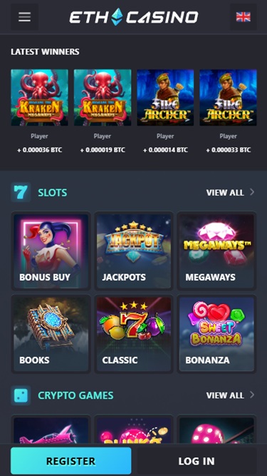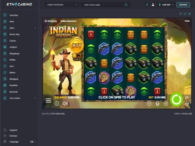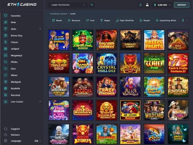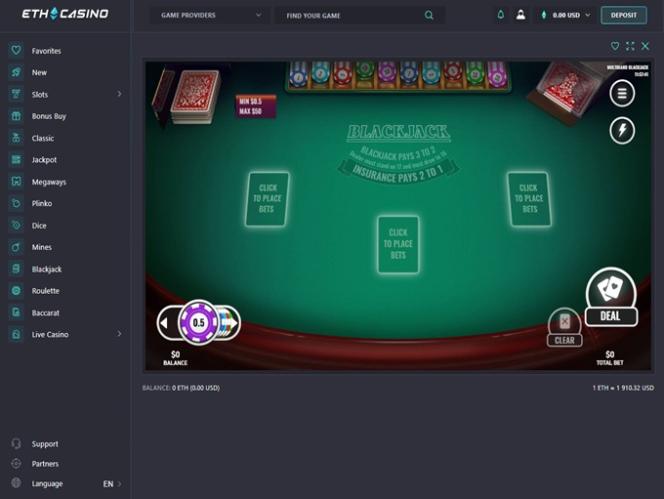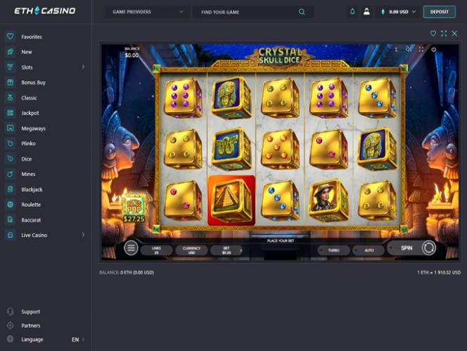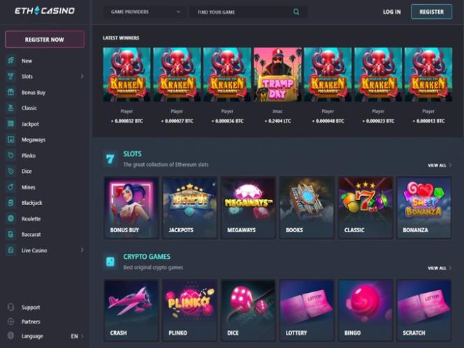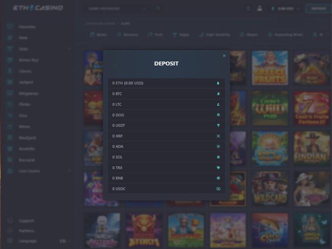 ETH 赌场是一家仅使用加密货币的赌场,它接受流行的数字货币,如以太坊、比特币......该赌场拥有即时提款、无需验证程序等优势,对于寻求无忧游戏体验的赌场玩家来说,这是一个绝佳的选择。