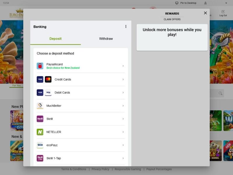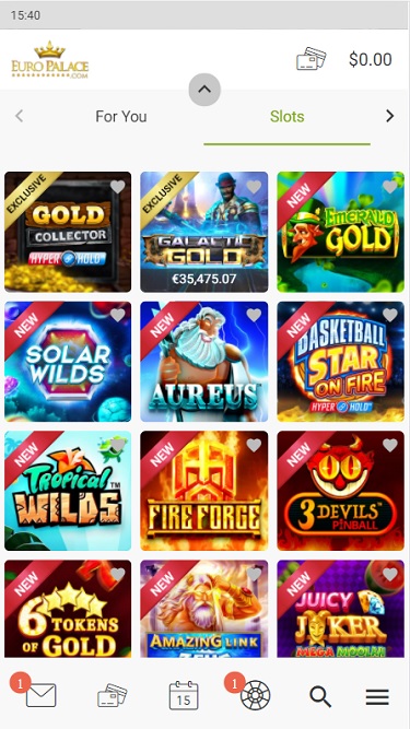 Euro Palace 赌场由 Microgaming, Evolution Gaming, Rabcat, Pragmatic Play, Triple Edge Studios, Northern Lights Gaming, Stormcraft Studios, Switch Studios, Electric Elephant Games, All41 Studios, Gameburger Studios, Pulse 8 Studios, Neon Valley Studios, SpinPlay Games, Real Dealer Studios, GONG Gaming, On Air Entertainment, Buck Stakes Entertainment, Games Global, Old Skool Studios, Foxium, Just For The Win, PearFiction Studios, Slingshot Studios, Fortune Factory Studios, Crazy Tooth Studio, Alchemy Gaming, Snowborn Games, Gold Coin Studios, Half Pixel Studios, Eurostar Studios, Aurum Signature Studios and Area Vegas提供支持,提供数百种不同的赌场游戏以及一个可靠的游戏平台。玩家可以通过 Euro Palace 的网站或下载的软件访问赌场,该软件将赌场客户端直接安装在您的电脑上。这两个平台几乎完全相同,选择其中一个平台并无太大区别。此外,我们还提供移动赌场,方便玩家在电脑或移动设备上畅玩。