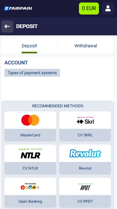 Fairpari Casino 提供多种支付方式,例如 Polkadot、Dash、Skrill、Netteler、Visa 和MasterCard等等,以及许多加密货币选项,例如比特币、比特币现金、卡尔达诺、狗狗币、以太坊、莱特币、瑞波币、Solana、Tether、Ton、Tron、USD Coin 和 Zcash。