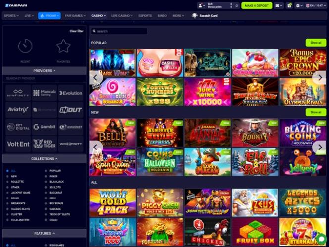 Fairpari Casino 拥有相当令人印象深刻的游戏库,由一些最知名的 iGaming 工作室提供。