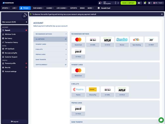 - 所有可用的存款选项都可以在“存款页面”中找到,但请记住,在某些国家/地区并非所有选项都可用。