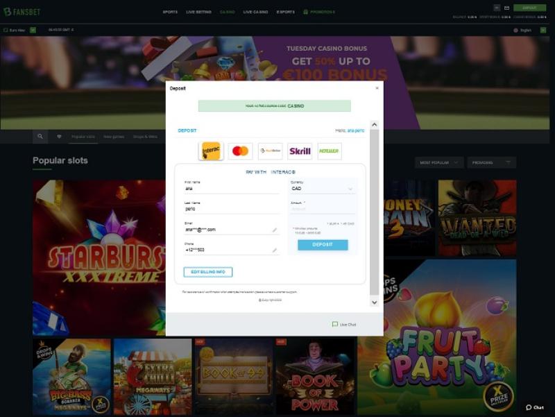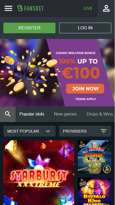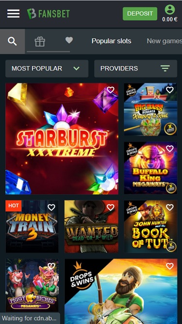 FansBet 拥有一个老虎机库,里面挤满了深受大家喜爱的顶级游戏:Starburst XXXtreme、Sweet Bonanza Xmas、Gonzo's Quest、Buffalo Rising MEGAWAYS、Starburst、Big Bass Bonanza、Bigger Bass Bonanza、Dragon's Fire MegaWays、The Goonies、Fruit Party、The Dog House、Gates of Olympus™、TED Megaways、Rick and Morty Megaways、Twin Spin 117649 Megaways、John Hunter and the Quest of Bermuda Riches、Return of Kong Megaways、Dead or Alive 2™ Feature Buy、Vikings Unleashed MEGAWAYS、Finn`s Golden Tavern、Jack and the Beanstalk、Buffalo King Megaways、Pirates Plenty Battle for Gold、Diamond Mine Extra Gold Big Bet、Piggy Riches Megaways、John Hunter and the Book of Tut、Book of Fallen、Mercy of the Gods、Vegas Night Life、Imperial财富、神圣财富、超级小丑、大旋转超级奖金、累积奖金 6000、阿兹特克星宝石、迪斯科丹尼、大转盘、大旋转超级奖金、翡翠钻石、红钻石、骰子骰子……
