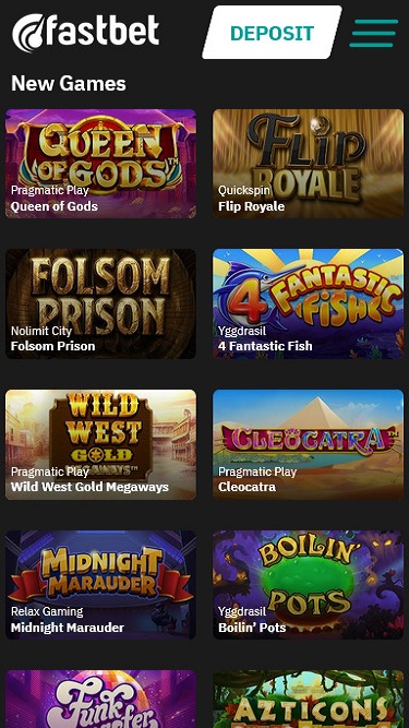 FastBet 赌场由 Microgaming, Net Entertainment, Barcrest, Big Time Gaming, ELK Studios, Evolution Gaming, iSoftBet, lightningboxgames, Play'n GO, Rabcat, Relax Gaming, Thunderkick, Yggdrasil, Pragmatic Play, Nolimit City, Red Tiger Gaming, Fantasma Games, Triple Edge Studios, Northern Lights Gaming, Stormcraft Studios, Electric Elephant Games, Gluck Games, Gameburger Studios, SpinPlay Games, Blue Guru Games, Games Global, Push Gaming, WMS, SG Interactive, Red7Mobile, Scientific Games, Foxium, Betdigital, Just For The Win, Storm Gaming Technology, Wild Streak Gaming, Fortune Factory Studios, Jade Rabbit Gaming, 4ThePlayer, AvatarUX, Gamevy, Alchemy Gaming, Hacksaw Gaming, Peter And Sons, Area Vegas, Print Studios and Reel Kingdom提供支持,其游戏通过网页平台提供,您可以通过自己喜欢的浏览器访问。我喜欢这个网站的设计,而且很容易找到我想玩的部分。FastBet 还完全支持移动端游戏,如果您愿意,可以使用智能手机进行投注。Baccarat