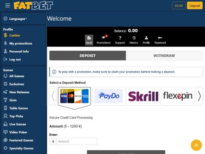 刚刚加入 FatBet Casino 的玩家将获得一笔可观的欢迎奖金,该奖金涵盖在赌场进行的首次三笔存款。