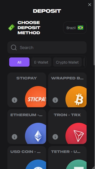 浏览主页,玩家还可以查看所有可用的支付方式、提供的促销活动、推荐计划以及可以参与的会员计划。该品牌在网站左上角设有一个可扩展菜单,方便玩家详细查看所有娱乐选项。在这里,您可以访问自己喜欢的游戏和体育博彩版块。此外,玩家还可以访问负责任博彩、客户支持和常见问题解答页面。