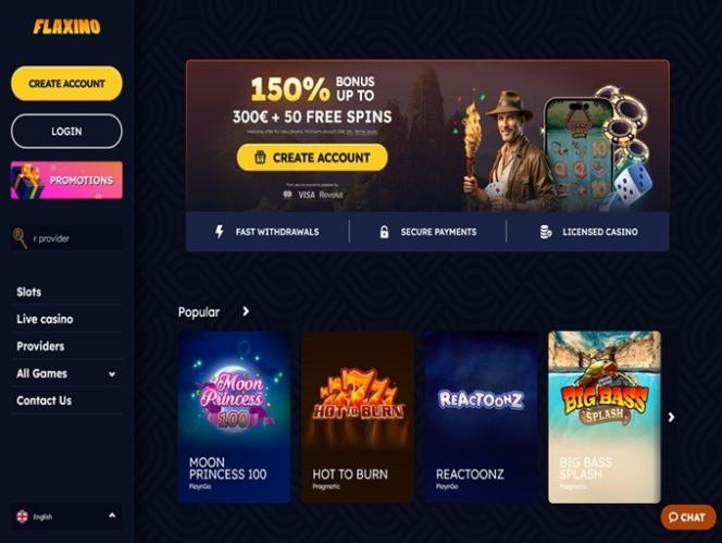 Flaxino是一家获得库拉索博彩管理局许可的在线赌场,拥有令人印象深刻的游戏库。无论您喜欢旋转老虎机、真人游戏还是像二十一点和轮盘赌这样的桌面游戏,您都很有可能在这里找到。