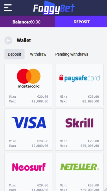 玩家可以选择多种安全的银行支付方式,包括信用卡和借记卡、 Neteller 和 Skrill等热门电子钱包、电汇以及其他在线支付方式。不过,在我们访问期间,这家赌场尚不支持加密货币和加密钱包。