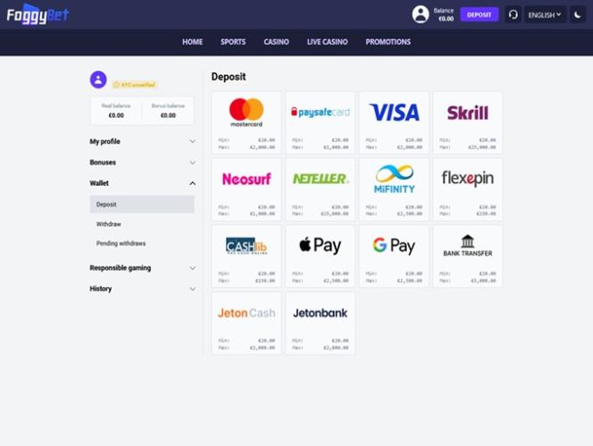 正如我们之前提到的,FoggyBet Casino 为赌场玩家和在线体育博彩爱好者提供诱人的在线赌场奖金。促销部分分为赌场、体育和真人娱乐场促销,每个类别都包含针对常规赌场玩家的诱人优惠。