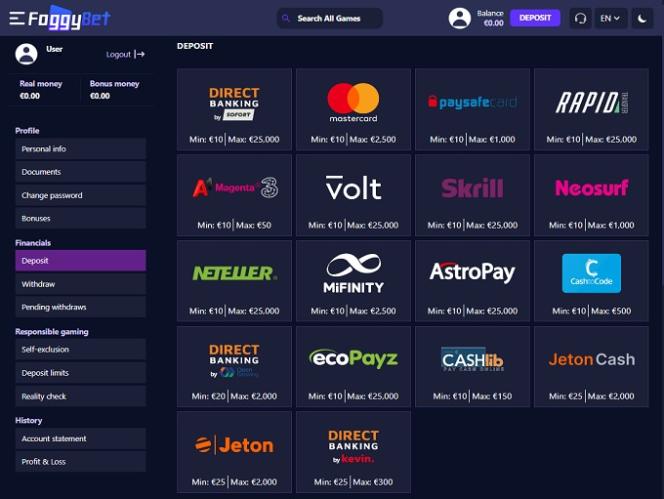 FoggyBet 由顶级在线赌场软件公司提供支持,为这个极具吸引力的游戏场所提供各种高品质的在线赌场游戏。