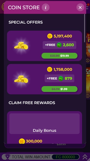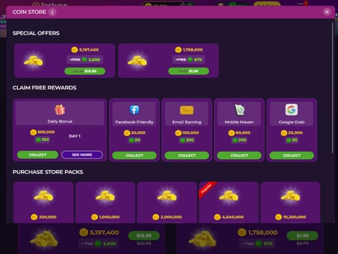 在我们开始列举所有令人兴奋的内容之前,您必须知道,所有游戏和内容都可以完全免费体验,无需购买任何费用。这家社交赌场允许玩家赚取虚拟货币、金币和财富币,而无需花费现实生活中的金钱。