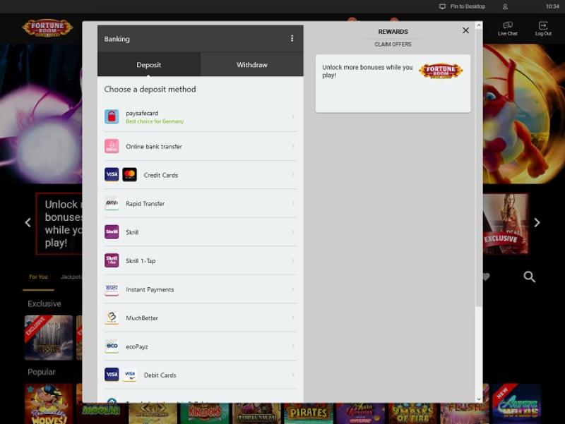Fortune Room Casino 由 Microgaming, Net Entertainment, Evolution Gaming, Triple Edge Studios, Stormcraft Studios, Switch Studios, Pulse 8 Studios, Games Global, Just For The Win and Fortune Factory Studios提供支持,提供海量游戏,可通过网页平台和可下载的软件畅玩。此外,它还提供移动网站,方便您在旅途中使用智能手机或平板电脑畅玩。