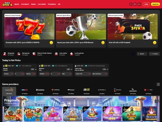 Free Spinza是一家现代化的在线赌场,提供种类丰富的赌场游戏,包括真钱老虎机、真人荷官游戏、桌面游戏和快节奏游戏,同时还设有强大的体育博彩板块。该品牌接受来自德国、奥地利、芬兰、瑞典和荷兰的玩家,并承诺通过丰富的游戏、促销活动和奖金,为玩家带来绝佳的博彩体验。