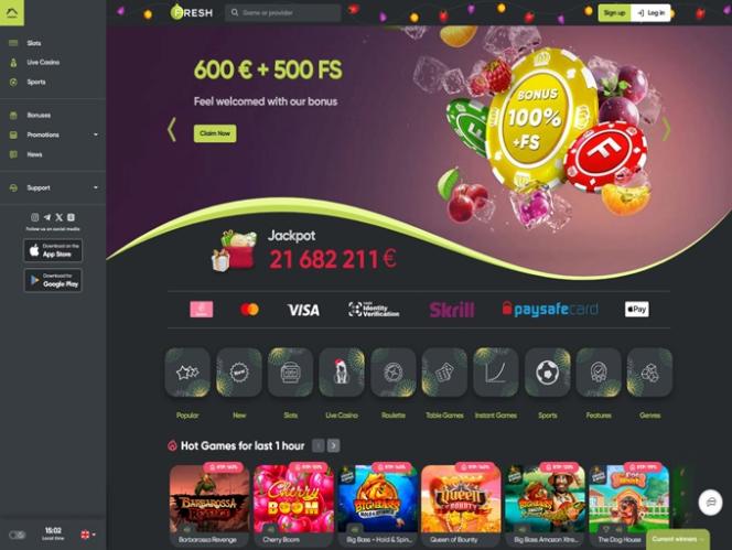 我们已经发布过该公司旗下其他赌场(例如Jet Casino )的评测,乍一看,Fresh 的博彩体验似乎同样令人印象深刻。该运营商提供种类齐全的在线赌场游戏,这意味着所有玩家的口味都能得到满足。