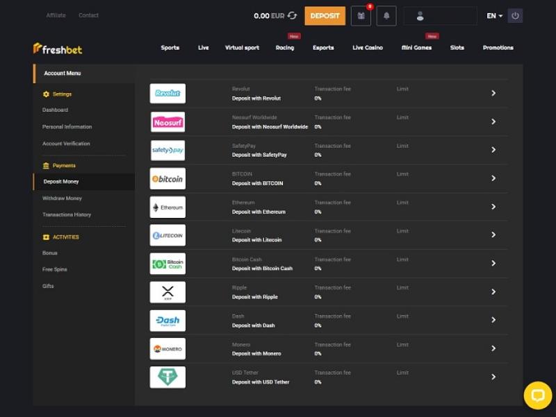 在撰写此评论时,FreshBet Casino 并未在其优惠中包含忠诚度计划。