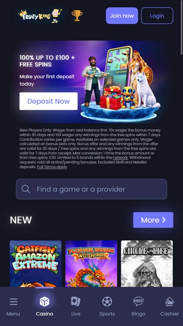 Fruity King Casino 是一个在线博彩网站,由 ProgressPlay Limited 于 2014 年创立。该赌场专注于移动游戏市场,为随时随地的玩家提供各种适合小屏幕的游戏,同时也支持台式电脑。