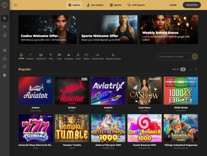 赌场的外观固然重要,但玩家更关心的是他们能玩到哪些类型的游戏。令人欣喜的是,该品牌提供丰富的赌场游戏选择,包括真钱老虎机、真人荷官游戏、即时崩溃游戏和传统桌面游戏,所有游戏均有多种玩法。