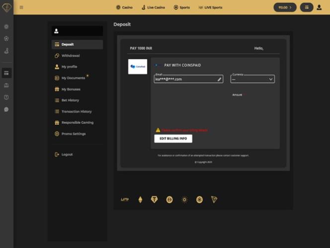 网站视觉设计采用引人注目的配色方案,以深色背景和金色调为主,无疑给人一种该品牌旨在提供奢华博彩体验的印象。用户界面简洁明了,这意味着您可以轻松浏览所有版块和页面。