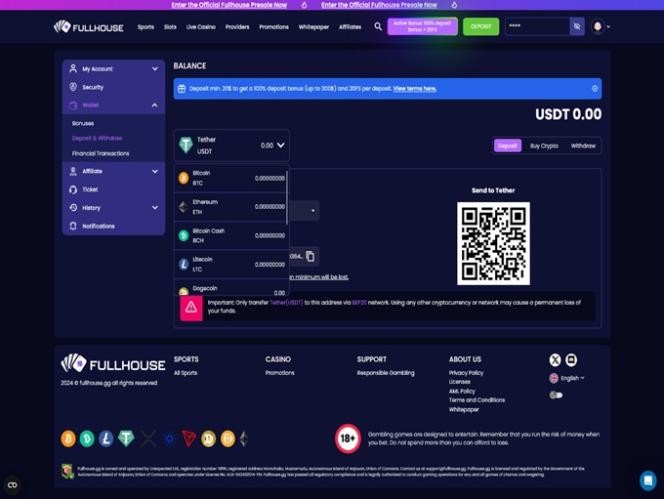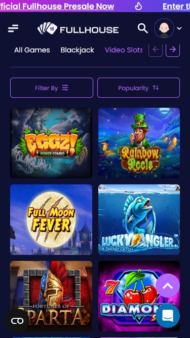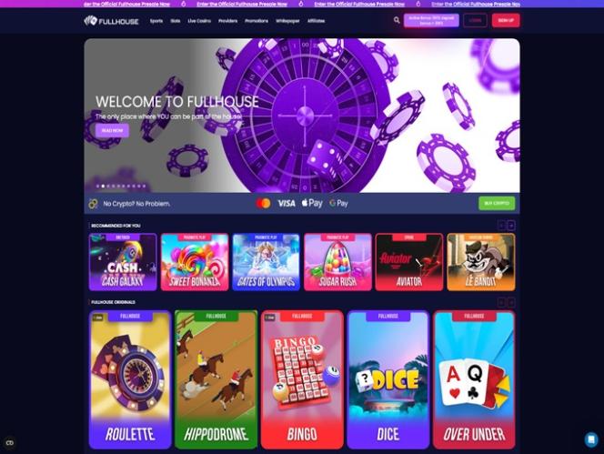 如果您喜欢加密赌场游戏,请务必查看Fullhouse 原创游戏和其他热门游戏,例如:Plinko、Aviator、Sweet Bonanza、Limbo、Gates of Olympus、Sugar Rush、Mines、Le Bandit、Rich Wilde and the Tome of Insanity、Solar Queen、Trading Dice、Fullhouse Live Roulette、Hippodrome、Fullhouse Live Tombola、Marbles、Dice......运营商绝对致力于确保玩家能够接触到业内最新的游戏和趋势。