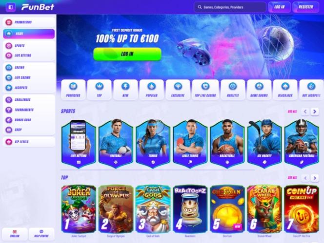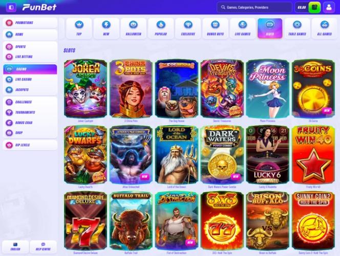 这家赌场的布局与同一网络中的其他赌场一致,但每家赌场都拥有独特的配色方案和设计,以及精美的图形细节,营造出温馨的氛围。FunBet 的主题更偏向体育博彩玩家,但由于我们很快就切换到了赌场和真人娱乐场板块,所以这完全不成问题。相反,这款设计带有一丝冰蓝色调,散发着极致的清新和美感。