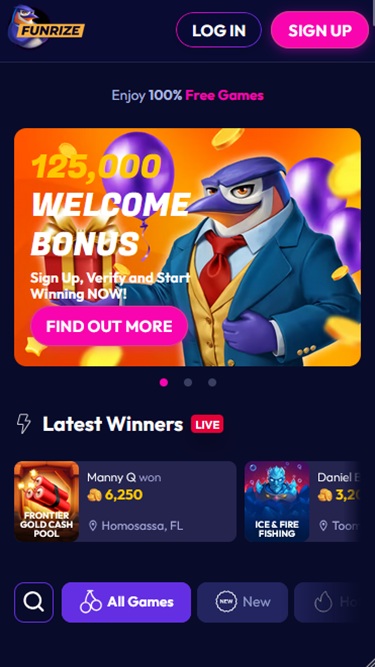 Funrize Casino 欢迎玩家来⾃ Ohio