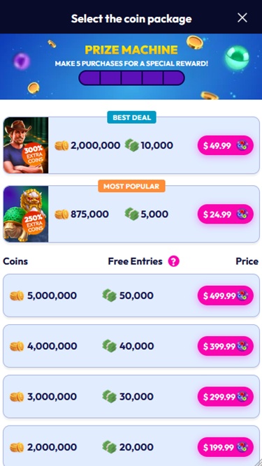 由于这是一家社交赌场,玩家无需支付真钱即可体验所有游戏和内容,甚至可以免费畅玩。网站提供锦标赛币和促销券两种独特的虚拟货币,可用于玩游戏和参加各种活动。
