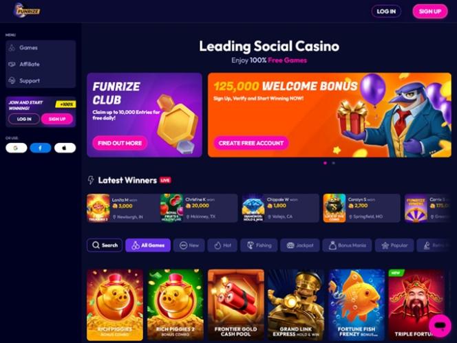 Funrize Casino 是一个社交网站,为美国各地(怀俄明州、爱达荷州、华盛顿特区、犹他州和密歇根州除外)的玩家提供类似赌场的游戏。