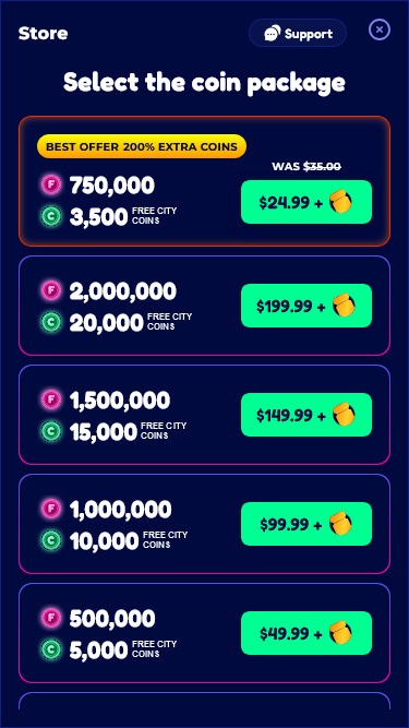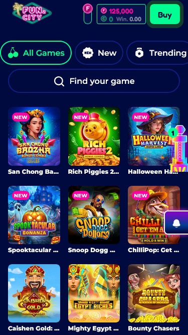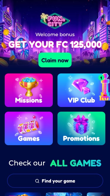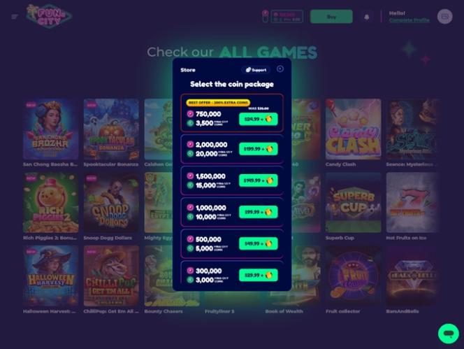 每个社交赌场都需要一个强大的推广计划来吸引大量玩家,而 FunzCity 赌场正是如此。每个新账户都将获得 Fun Coins 和 City Coins 奖励,让他们可以尽情享受游戏之旅,无需担心账户余额。