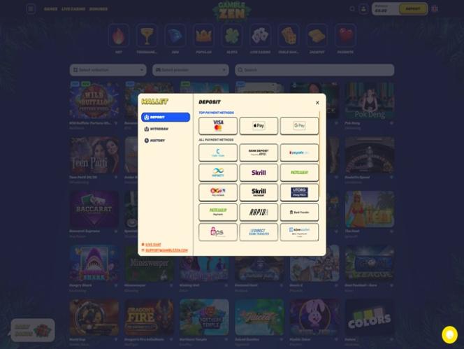 Gamblezen 提供海量游戏库、丰富的促销优惠和引人入胜的会员计划。此外,它还提供丰富的银行选项,包括加密货币。