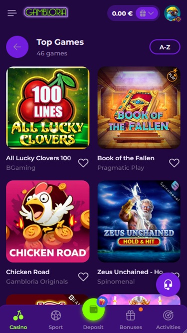 Gambloria Casino 是一个致力于为玩家提供丰富多样游戏和活动的博彩网站。游戏选择包括真钱老虎机游戏、真人荷官、桌面游戏、速成游戏和体育博彩。此外,该品牌还凭借丰厚的奖金和促销活动广受玩家欢迎,即使是最资深的玩家也能乐在其中。