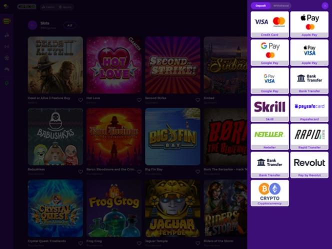 在设计方面,该品牌投入了大量精力,力求打造美观易用的网站。网站风格简洁流畅,采用深紫色背景和亮绿色色调。布局简洁,易于浏览,让您轻松找到所有游戏和赌场版块。