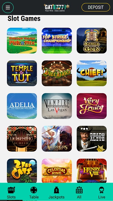 Gate777 赌场由 Microgaming, Net Entertainment, 1x2gaming, Barcrest, ELK Studios, Evolution Gaming, EYECON, Ezugi, lightningboxgames, Oryx, Play'n GO, Rabcat, Relax Gaming, Thunderkick, Wazdan, Realistic Games, Booming Games, Stakelogic, Pragmatic Play, Nolimit City, Felt Gaming, Red Tiger Gaming, Spinomenal, Red Rake Gaming, Fantasma Games, Kalamba, Revolver Gaming, Skywind, Spinmatic, Triple Edge Studios, BGAMING, Northern Lights Gaming, Stormcraft Studios, Switch Studios, Electric Elephant Games, Pocket Games Soft, All41 Studios, Gluck Games, Gameburger Studios, Pulse 8 Studios, Slot Factory, Neon Valley Studios, Golden Rock Studios, Spearhead Studios, Swintt, Shuffle Master, SpinPlay Games, HungryBear Gaming, GONG Gaming, Blue Guru Games, Lady Luck Games, On Air Entertainment, Buck Stakes Entertainment, Design Works Gaming, Games Global, Ainsworth, Blueprint Gaming, Endemol Games, Leander Games, Merkur Gaming, NYX Interactive, Push Gaming, Tom Horn Gaming, WMS, Inspired Gaming, SG Interactive, Scientific Games, Side City Studios, Reel Time Gaming, Authentic Gaming, Iron Dog Studio, Old Skool Studios, Foxium, Just For The Win, Storm Gaming Technology, PearFiction Studios, Apollo Games, Wild Streak Gaming, Slingshot Studios, Fortune Factory Studios, Jade Rabbit Gaming, RubyPlay, 4ThePlayer, AvatarUX, Gamevy, Crazy Tooth Studio, NetGaming, High 5 Games, ReelPlay, AGS Interactive, Alchemy Gaming, Black Pudding Games, Snowborn Games, Hacksaw Gaming, Max Win Gaming, Gold Coin Studios, Half Pixel Studios, SilverBack Gaming, Peter And Sons, Aurum Signature Studios, Armadillo Studios, Lucksome Gaming, Area Vegas, RAW iGaming, Leap Gaming, Wishbone Games, Print Studios, Gaming Corps, HammerTime Games, Four Leaf Gaming, INO Games, Nailed It! Games, Live 5, Neko Games, Reel Kingdom, Oros Gaming and Light & Wonder提供支持,其游戏通过网页平台提供,可通过您的网络浏览器加载。网站界面简洁明了,您可以轻松找到想玩的游戏。此外,它还内置了全面的移动兼容性,让您随时随地畅玩。