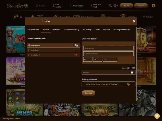 Banking银⾏业务选项 的 GemoBet.io Casino