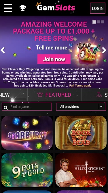 GemSlots 赌场是一个在线博彩网站,由马耳他的 ProgressPlay Limited 运营。该赌场的目标是为玩家带来丰富的老虎机游戏,同时也移植了一系列其他游戏,例如桌面游戏和真人荷官游戏。该网站拥有超过 1,200 款游戏,并提供丰厚的奖励计划。如果您正在寻找新的在线赌场,GemSlots 将是您的理想之选。