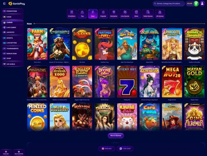 在 GeniePlay 赌场创建账户的玩家将有机会体验各种博彩活动。丰富的游戏库涵盖所有热门赌场游戏,例如在线老虎机、真人荷官、桌面游戏和累积奖金游戏。此外,该网站还设有功能齐全的体育博彩版块。