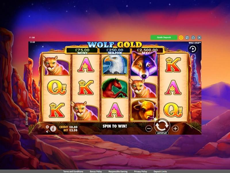 在线老虎机使用随机数生成器,并且有多种老虎机游戏可供选择:Wolf Gold、Sahara Riches Cash Collect、Big Bass Bonanza、Book of Dead、Treasures of the Lost Stones、Buffalo Rising Megaways、Mustang Gold、Golden Tundra Wolf、Chilli Heat、Rock the Reels Megaways、Thor、Diamond Mine Megaways……