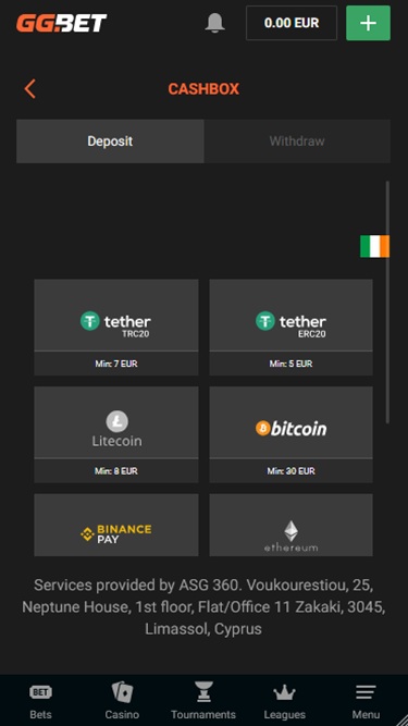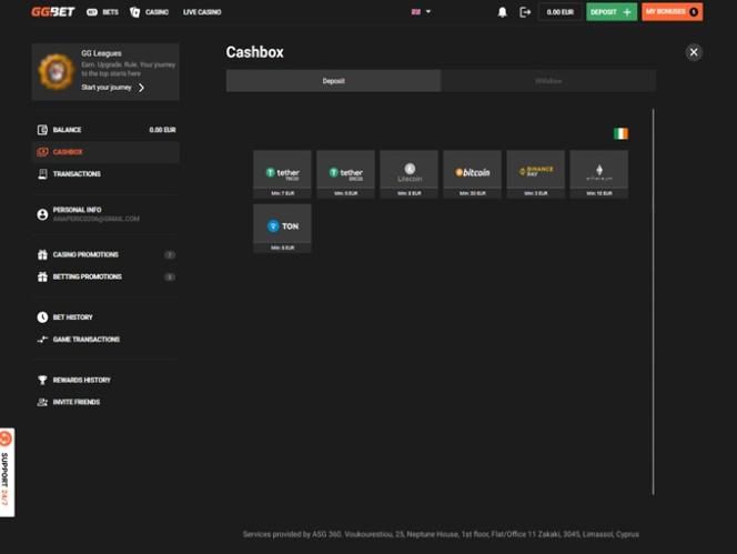 赌场的出纳员为玩家提供丰富的支付选项。提供超过三十种银行支付方式,包括传统支付、加密货币支付以及各种流行的在线支付系统。请注意,支付服务可能因国家/地区而异,但赌场会员仍然可以使用足够多的可靠选项进行金融交易。