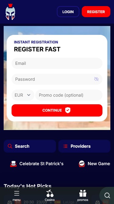在屏幕顶部,您会找到一个导航栏,单击一下即可进入体育、体育直播、赌场、真人赌场、促销活动、VIP俱乐部和锦标赛部分。