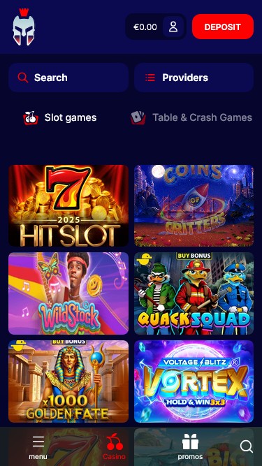 向右看,您会看到存款按钮、个人资料按钮、账户余额,以及语言切换选项和在线聊天按钮。当然,还有一个搜索按钮,点击即可打开搜索栏,方便您快速找到自己喜欢的游戏、游戏提供商或游戏类别!