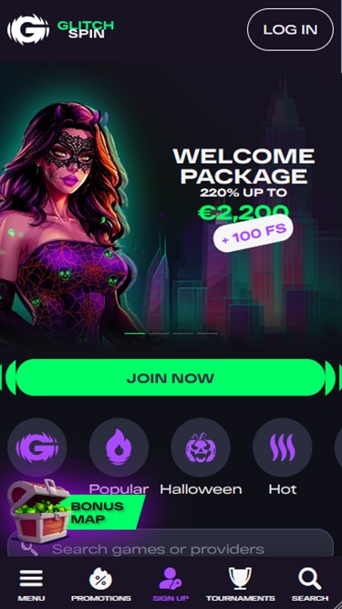赌场平台可通过所有设备访问。无论您使用个人电脑、智能手机还是平板电脑,只要您拥有稳定的网络连接,就能轻松畅玩 GlitchSpin 的大厅。让我们来看看赌场的精彩内容是否符合我们最初的期待!