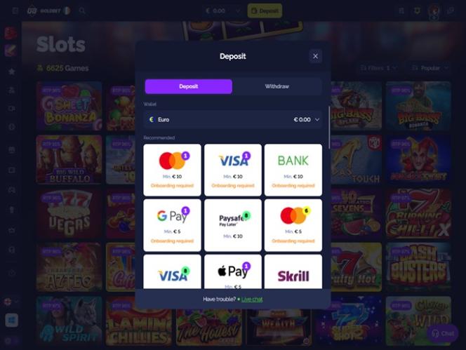 如果您主要关注的是丰富的赌场游戏库,以便探索和享受游戏乐趣,那么您应该关注一下他们提供的软件供应商。GoldBet 拥有丰富的软件开发商列表,玩家可以访问超过 80 家独特的软件供应商。