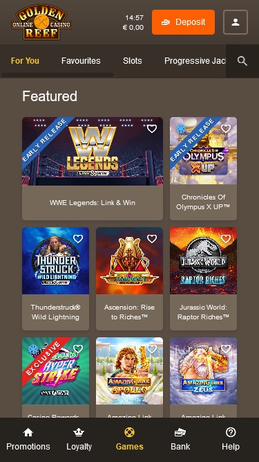 Golden Reef Casino 自 2001 年成立以来,就已成为备受好评的在线博彩网站。客户普遍对该赌场评价颇高,他们认为其卓越的银行系统、庞大的游戏库和稳健的管理是他们注册和畅玩的理由。赌场资讯