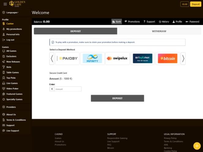 让我们来看看在满足会员的赌博需求和为他们提供一流的游戏内容方面,Golden Lady 是否也将其会员放在首位。