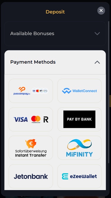 玩家可用的银行业务方法有:预付卡、借记卡和信用卡、电子钱包支付、即时银行业务和银行转账。