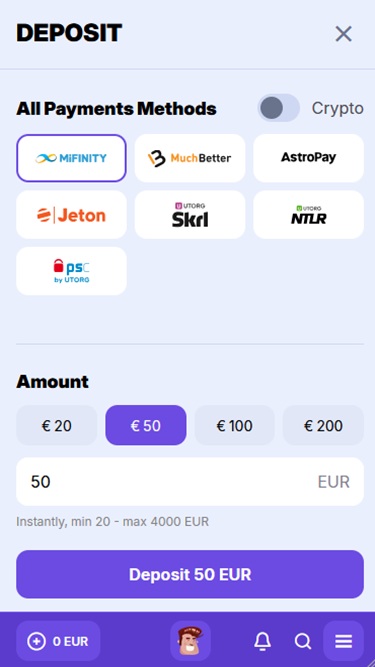 该运营商与超过45家软件开发商合作,提供涵盖多个类别的极其丰富的游戏选择。此外,该场地还拥有一个包含10个基本关卡和5个隐藏关卡的特别方案,以及一个专门用于举办各种促销活动的专属空间。
